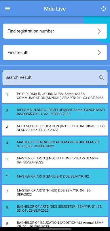 Mdu Live یک برنامه غیر رسمی Mdu برای دریافت جزئیات نتیجه شما است
