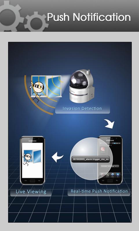• Cloud 2 Device Messaging (or Push notification) is supported as well to get you notified immediately if anything abnormal is happened. (PS1. There is a 1000 messages/day limitation by Google C2DM service. PS2. Google C2DM service makes no guarantees about delivery or the order of messages. PS3. The notification message arrival time may vary depending on Google C2DM server)