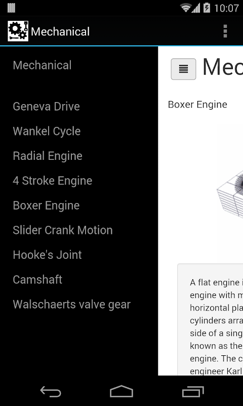Simple application explaining mechanical animations for the purpose of education and learning.