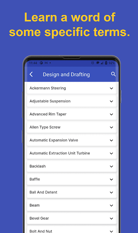 - Over 10000+ word dictionary of mechanical terms.