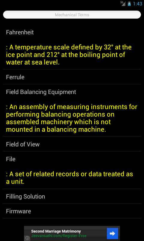 این واژه نامه مکانیکی ارائه می دهد تعاریف برای شرایط که معمولا در مکانیک و مهندسی مکانیک استفاده می شود.