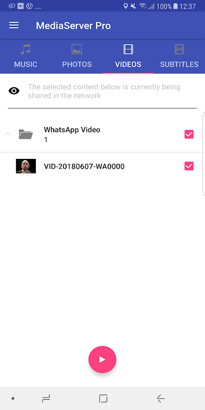 این برنامه تنها می توانید فایل های رسانه ای است که گالری آندروید می توانید ببینید (به جز فایل های AVI)، نگاه کنید اگر شما اضافه کردن یک ویدیو و در گالری نمایش داده نمی شود انتظار ندارند که این سرور می توانید آن را ببینید.
