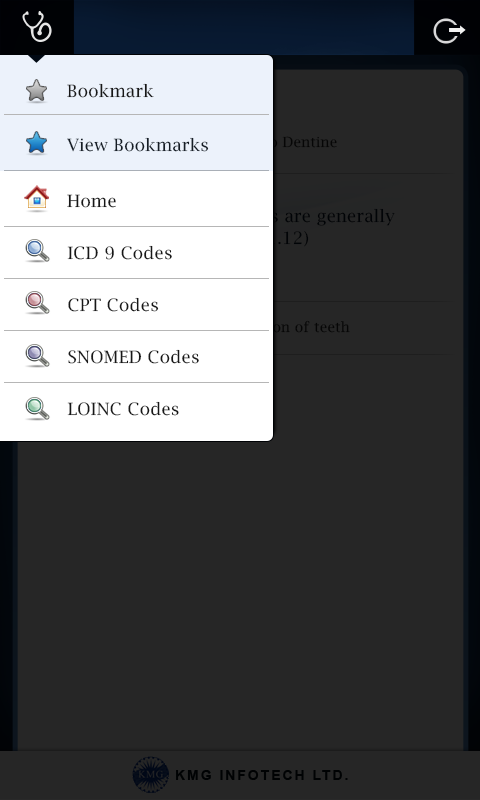 Medicode saves the time wasted in looking at huge lists of codes to search for one code. This application allows the user to search for Health IT codes within minutes. It gives access to the lists of ICD 9, ICD 10, CPT codes, LOINC and SNOMED CT codes by performing a simple search. The search results provide a list of codes exactly or similar to the search query which helps if there is a doubt in regards to a particular code. The user can get both short and long descriptions of the code by clicking on the code that they need more information on. For the ease of frequent users, the view page of every code includes a button that can be used to bookmark any code in a particular list. Medicode provides easy access to the bookmarks page from the home screen itself so the user can view the lists at any time by going into the bookmarks view. A short description of the lists is provided below: