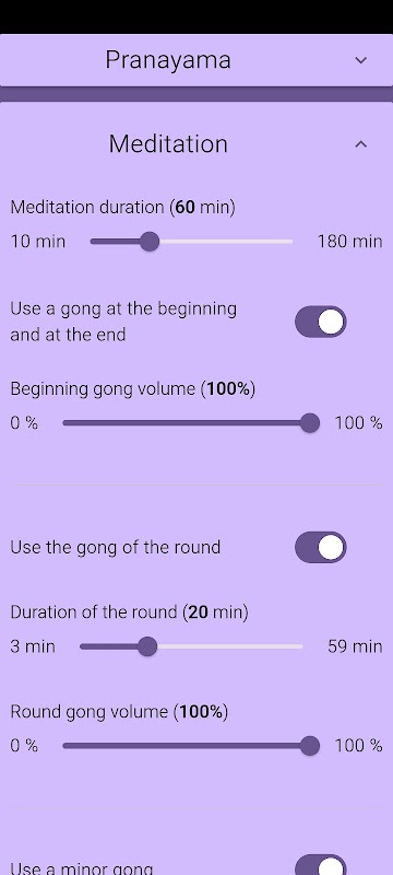 در تنظیمات برنامه، می توانید رنگ رابط را تغییر دهید و در حین مدیتیشن، تغییر خودکار را به حالت "مزاحم نشوید" تنظیم کنید.