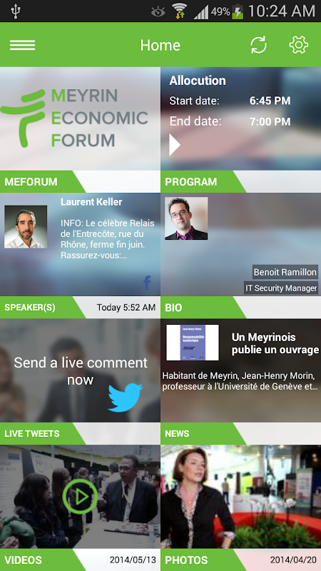 The MEForum app provides information about the MEForum Symposium 2014, including program, speakers' detail, and useful information. In addition, social content accessible from the app allow closer interraction with the speakers and organization. You can get the social media postings, latest news, post your comments, enjoy exclusive videos and photo library. The app also keep you updated through instant notifications.