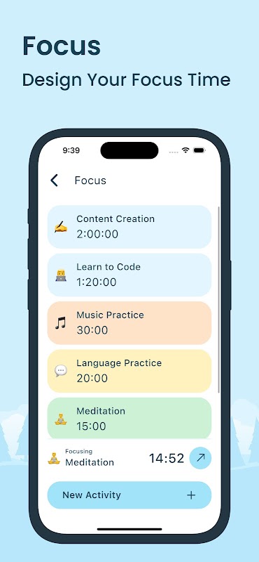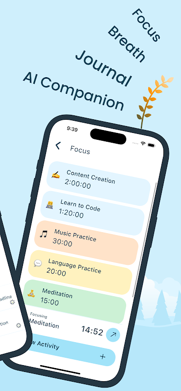 • تمرکز: تمرکز خود را از طریق تایمرهای تمرکز قابل تنظیم (به سبک پومودورو) آموزش دهید. فعالیتهای تمرکز مختلفی مانند مطالعه، خواندن یا کار خلاقانه ایجاد کنید و بدون خستگی، پربار بمانید.
