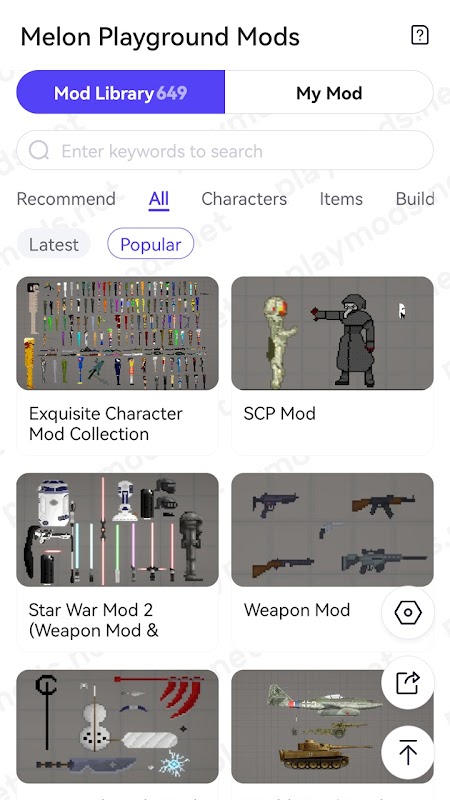 We have collected different kinds of high-quality Melon Playground mods such as character mods, weapon mods, building mods, item mods, and more.