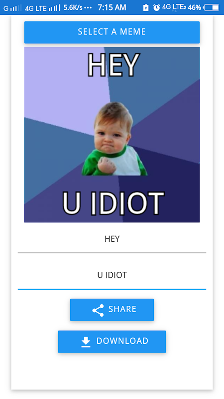 ♦With Meme maker you can create the funniest memes and share them with your friends via Facebook, Twitter, Instagram, Google+, E-mail, Dropbox.