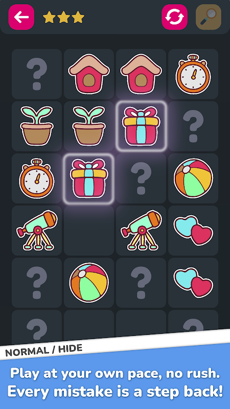 1️⃣ عادی: این بازی کارت حافظه را با سرعت خود، بدون محدودیت زمانی یا تلاشی انجام دهید.