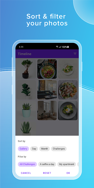 در جدول زمانی میتوانید تمام عکسهایی را که گرفتهاید مشاهده کنید، و همچنین میتوانید آنها را بهصورت دلخواه مرتب و فیلتر کنید.