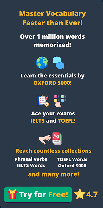 برنامه ما شامل لیست کلمات و تمرینات جامعی است که برای امتحانات تافل و آیلتس طراحی شده است و به شما کمک می کند واژگان آکادمیک مورد نیاز برای دستیابی به نمرات بالا را بسازید. به اصطلاحات اساسی که معمولاً در بخشهای خواندن، شنیدن و نوشتن آزمایش میشوند تسلط داشته باشید: