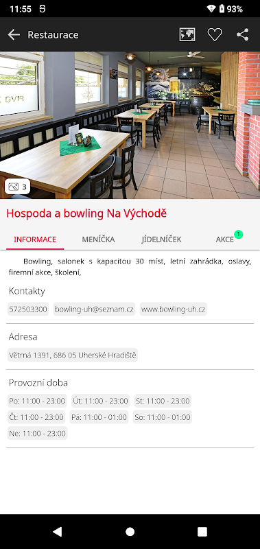 – výpis akcí v profilu restaurace