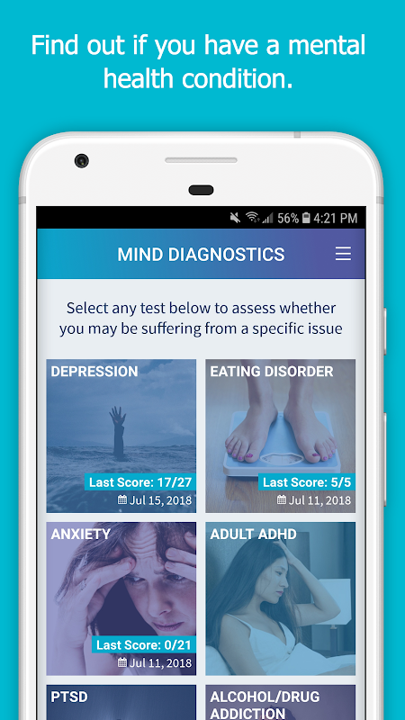 آزمایش در این برنامه یکی از سریعترین راه ها برای تعیین اینکه آیا شما علائم یک وضعیت خاص سلامت روانی را تجربه کرده اید شرایط بهداشت روان مانند افسردگی یا اضطراب واقعی ، شایع و قابل درمان است. و بهبودی ممکن است.