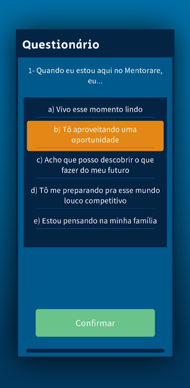 این برنامه که توسط Fundação Iochpe، یک موسسه غیرانتفاعی که از سال 1989 آموزش های حرفه ای را برای جوانان ارائه می دهد، توسعه یافته است، این برنامه در مراحلی سازماندهی شده است که در آن یک راهنمای مجازی راهنمایی و چالش هایی را ارائه می دهد تا بتوانید مهارت ها و نقاط ضعف، احساسات و عواطف خود را کشف کنید. ، روندهای بازار و تهدیدات رویاهای شما و خیلی چیزهای دیگر برای انجام پروژه زندگی و کاری خود.