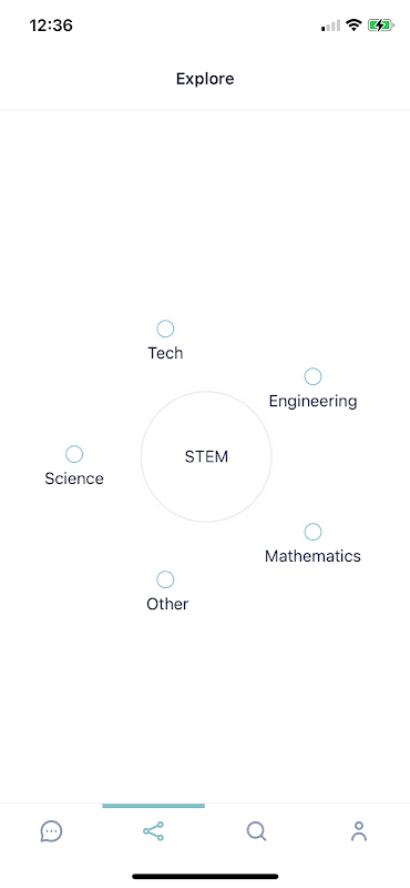 MentrU provides a unique connection experience through the mentor tree. Mentees can browse fields and concentrations and find mentors across many areas of STEM.