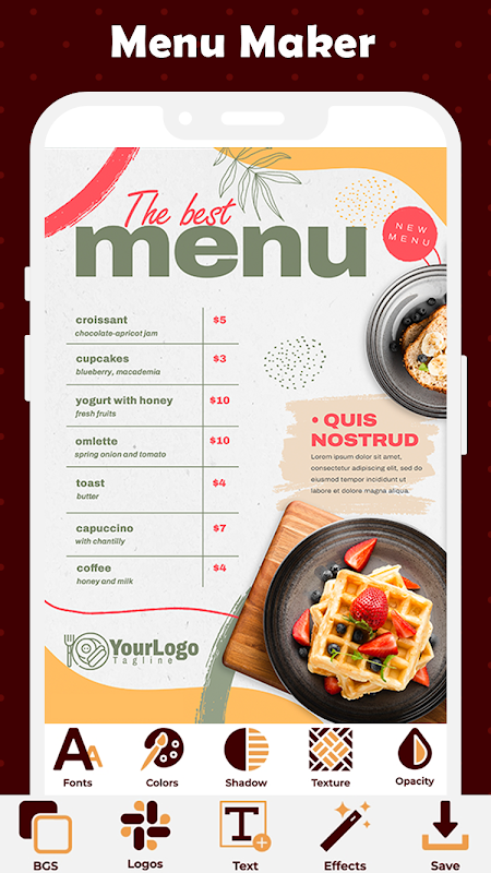 Vintage Design - برنامه طراحی منو و لوگو برای ایجاد منو برای رستوران های شما.