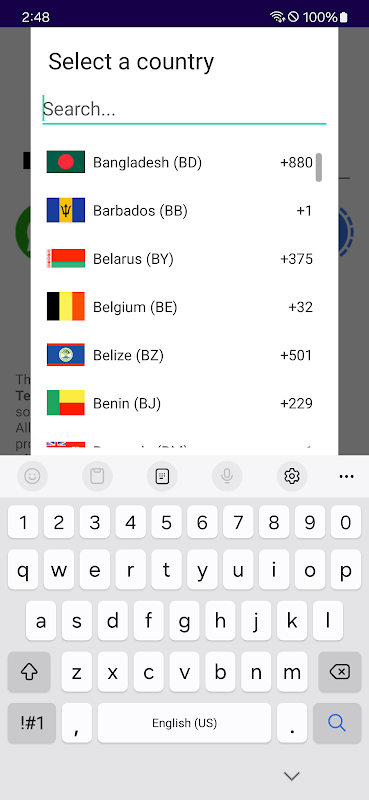 - کشور خود را انتخاب کنید: به سادگی کد کشور را از لیست انتخاب کنید.