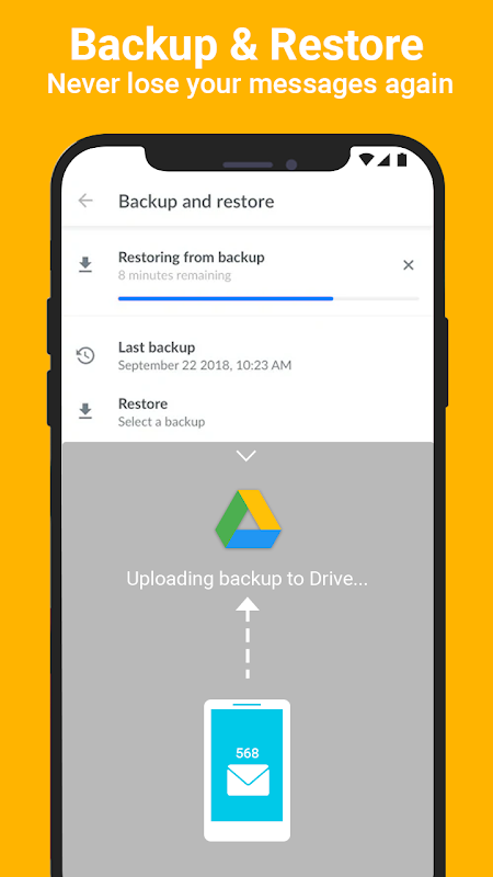 + Backup SMS & MMS messages to cloud, messages never get lost