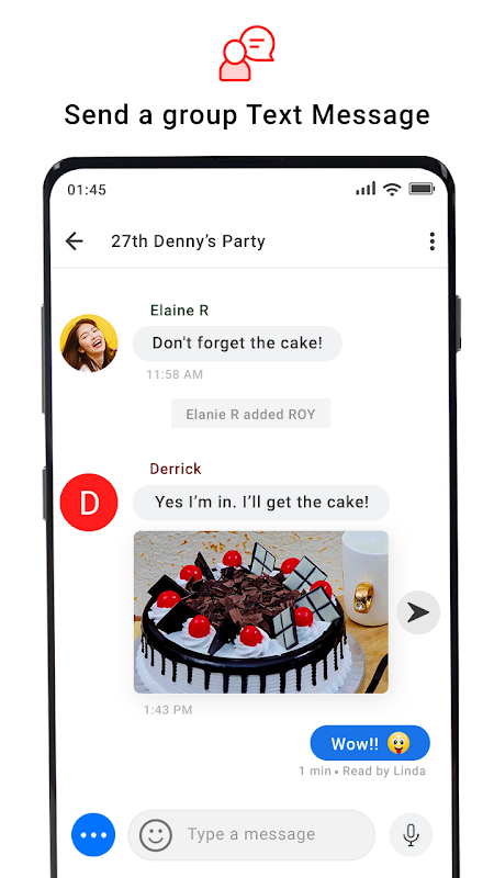 Send unlimited text messages (SMS), audio messages, emoji, stickers, MMS, or your location.