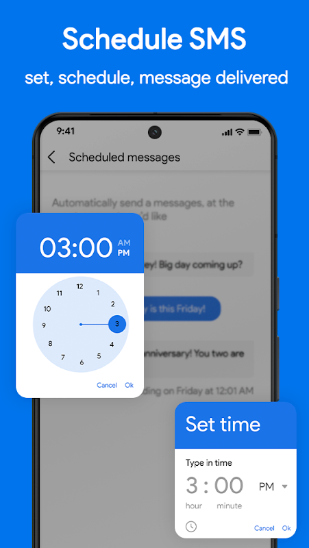 ● زمانبندی پیامها: پیامهای متنی را برنامهریزی کنید تا بعداً ارسال شوند و مدیریت ارتباطات خود را آسان میکند.