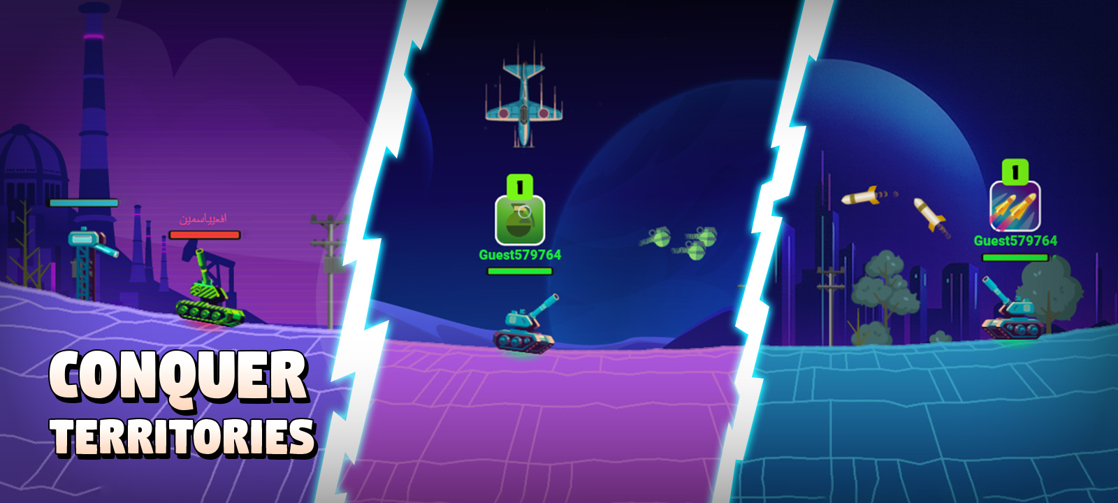 هدفگیری. کمانه کردن. پیروزی. متا تانکها: نبرد آنلاین PvP یک PvP توپخانهای دوبعدی نوبتی سریع و همزمان است که در آن هر تانک همزمان در زمینی کاملاً تخریبپذیر حرکت میکند، هدفگیری میکند و شلیک میکند. دسته تانک خود را بسازید، در پرش مهارت پیدا کنید و با هم (یا به صورت انفرادی) تیم تشکیل دهید تا آخرین تانک زنده بمانید.