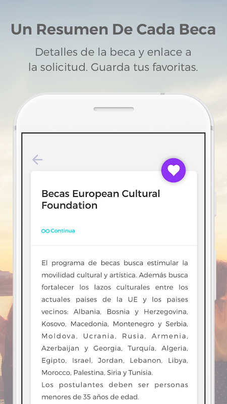بورس تحصیلی من اولین برنامه ای که جمع آوری در یک مکان بیشترین تعداد بورس های تحصیلی برای اسپانیایی زبان است. هدف این است که تنها با چند کلیک، شما دسترسی به سرعت و به طور موثر به بورس های تحصیلی که مناسب شیوه مشخصات خود را.