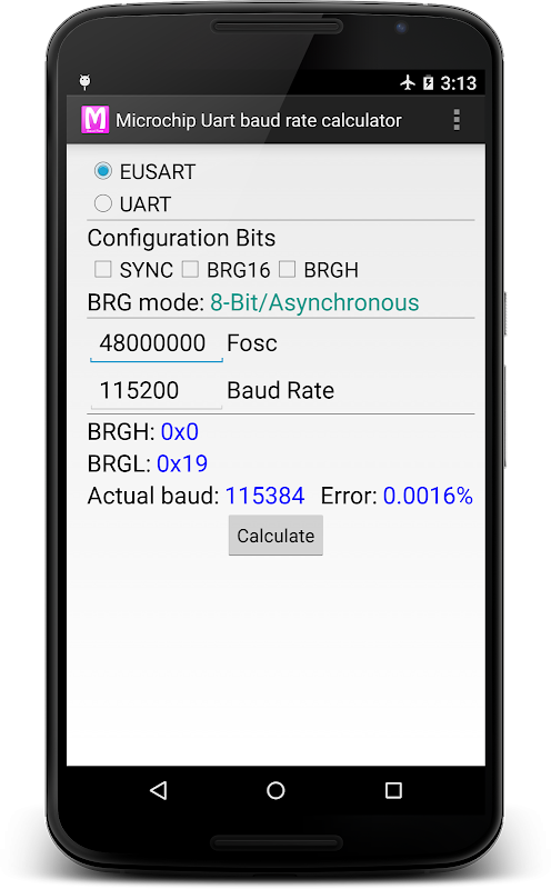 ماشین حساب سرعت UART Microchip