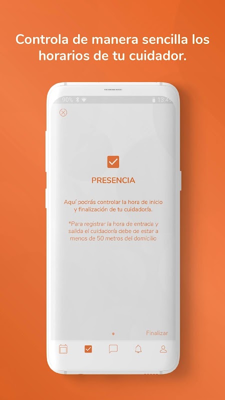 برنامه miCuidum همچنین دارای کنترل حضور است که به شما امکان می دهد تا دقیق لحظه ای را بدانید که مراقبت کننده شروع به انجام وظایف و همچنین در پایان روز کار خود می کند.