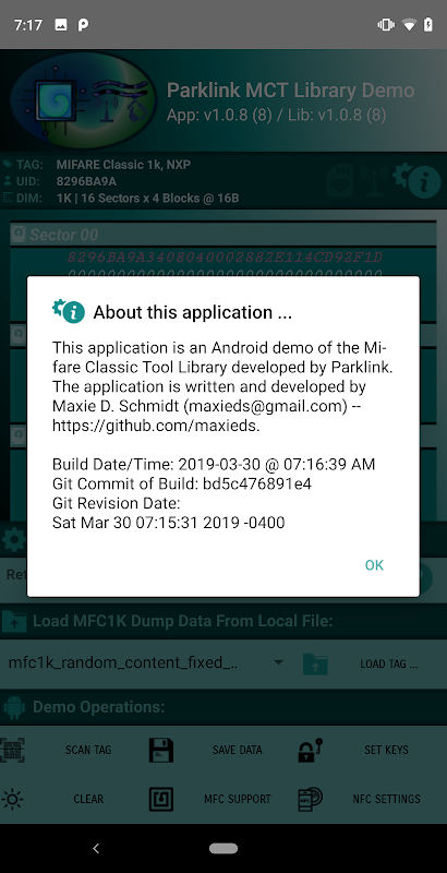 نرم افزار نسخه ی نمایشی برای نشان دادن عملکرد کتابخانه ابزار کلاسیک Mifare.