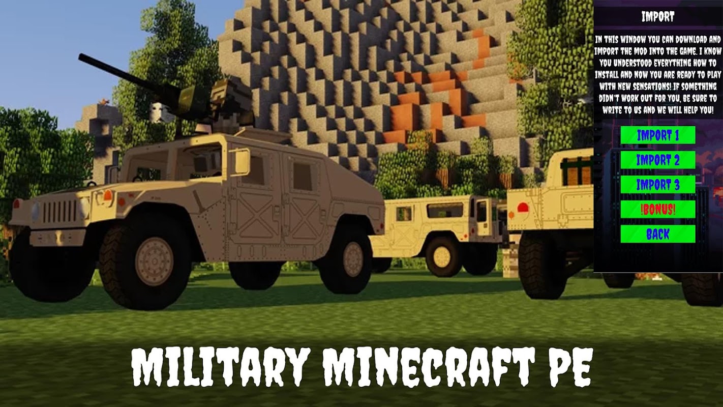✌ Giving joy Military mod for Minecraft PE 2022 can completely change your pastime in MCPE and make all other players marvel at your mods. Military mod for Minecraft PE is a modern addon with high-quality textures and a simple interface that will not leave anyone indifferent!