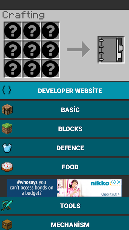 If you are playing Minecraft, the guide you need is here. All craft objects are under the headings. In your mobile phone with picture narration.The latest version is fully compatible with minecraft.