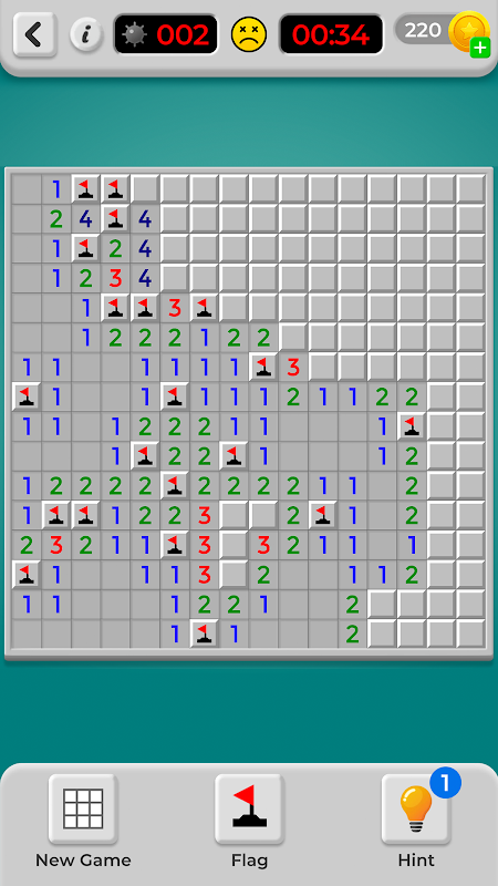پیشرفت خود را در بازی Mine Sweeper دنبال کنید و از حالت پرچم نیز استفاده کنید. در این بازی حدس بمب. برای پرچمگذاری روی مربعی ضربه بزنید. ضربه بزنید و نگه دارید تا مربع پاک شود. تمام سطوح را پاک کنید و به پادشاه مین یاب تبدیل شوید.