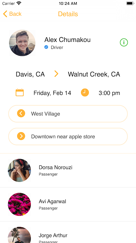 - In-App group chats for each ride makes it easy to stay in touch!