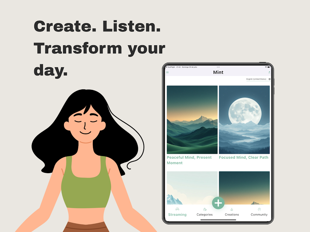 Mint MINT را کشف کنید، برنامهای که به شما امکان میدهد مراقبههای هدایتشده شخصی خود را در صدای با کیفیت بالا، کاملاً متناسب با نیازهای شما ایجاد کنید. زیرا هیچکس بهتر از شما نمی داند به چه چیزی نیاز دارید.