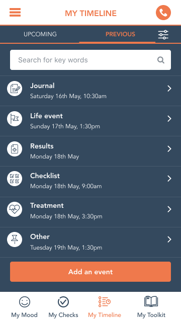 * جدول زمانی من سابقه قرار ملاقات های پزشکی را نگه دارید. تاریخ های آزمایش و تشخیص؛ نتایج و درمان برای مدیریت شرایط