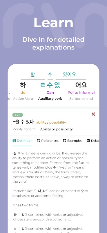 آیا در حال یادگیری زبان کره ای هستید؟ Mirinae به شما کمک میکند تا تمام بخشهای گفتار و الگوهای دستور زبان را در هر متن کرهای که به آن میدهید، درک کنید.