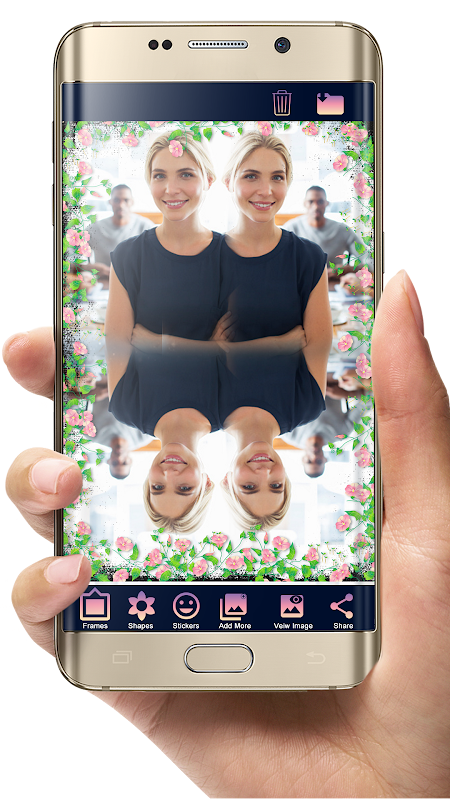 باز کردن برنامه و تصویر خود را انتخاب و اضافه کردن جلوه های مختلف آینه، قاب، پس زمینه عکس ها، اشکال عکس و برچسب به عکس خود را به آن را زیبا تر.