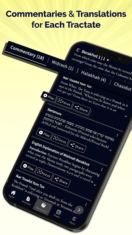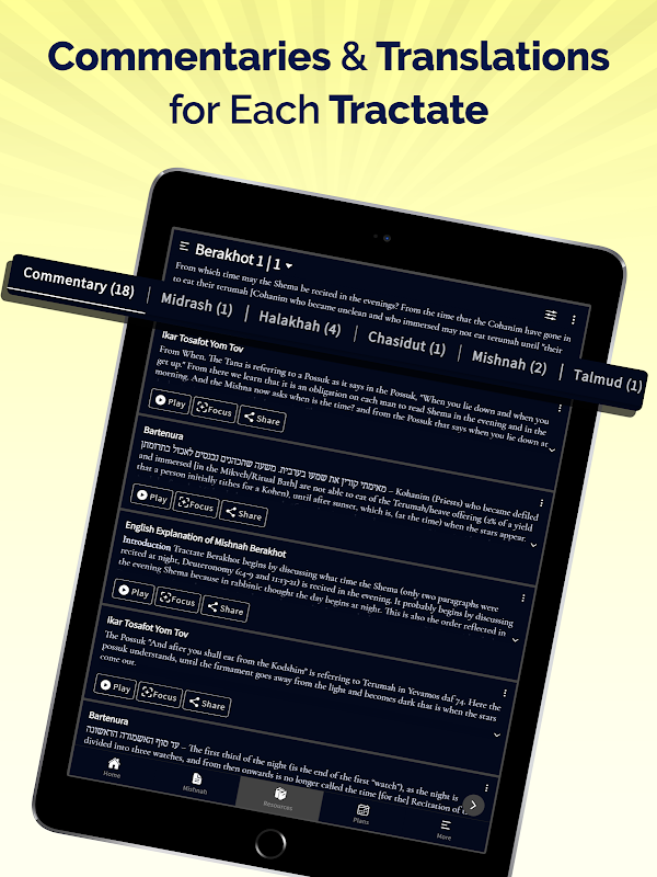 متون میشنا و تفسیرهای یهودی به زبان عبری و انگلیسی ارائه شده است. اگر به مطالعات کتاب مقدس یهودی، تورات، کتاب مقدس یهودی علاقه مند هستید، بسیار مفید است.