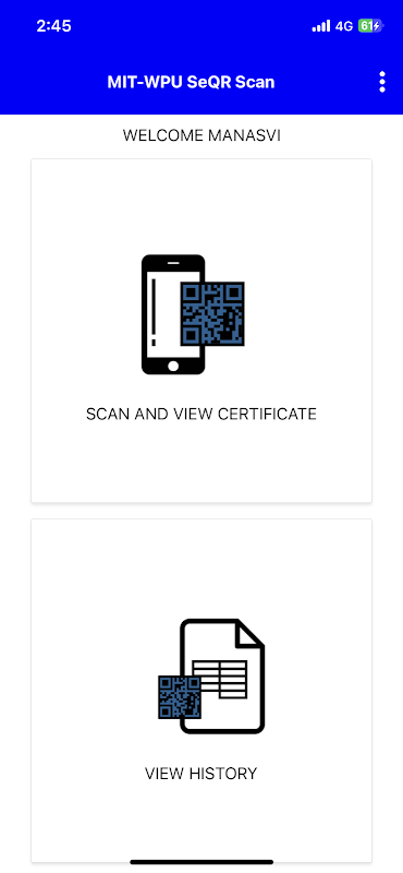 این برنامه پس از اسکن، پیش نمایش گواهی و سایر داده های سند را ارائه می دهد که می تواند با سند موجود مقایسه شود. بنابراین تأیید اسناد دانشگاه MIT-WPU از طریق این برنامه سریع، رایگان و آسان است