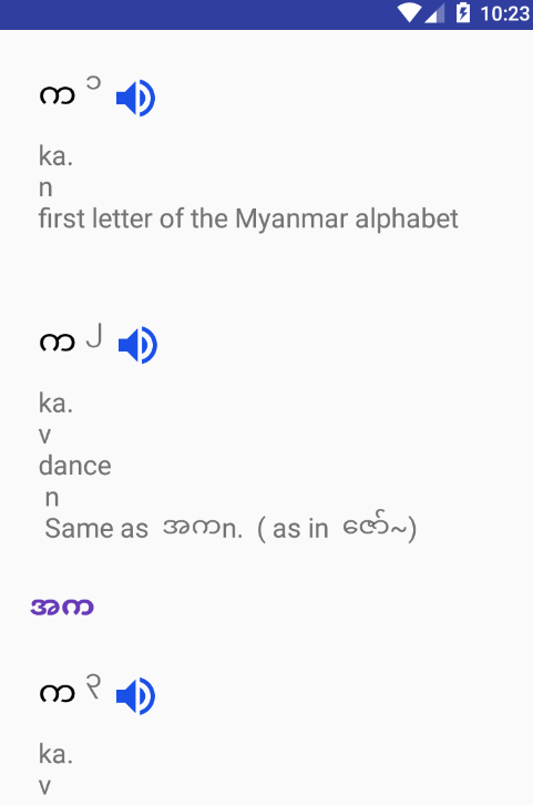 The Myanmar-English dictionary is an offline application. It can be explored the meaning of Myanmar word to English.