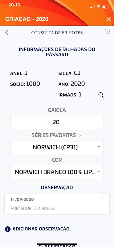 برنامه ثبت نام جوجه ها و زوج های پرندگان.
