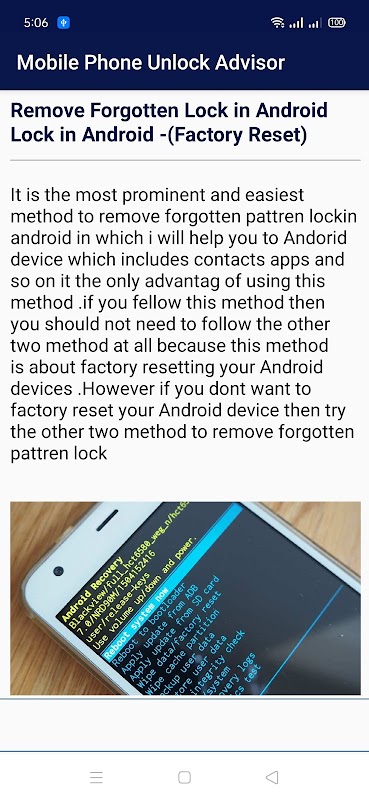 If you Forgot the security PIN or password of your Android or other type of phones then do not be panic, there’s always a solution. Mobile Phone unlock help is a free android App that guides you to clear almost all type of security locks and password of mobile Phone if you forgot by different methods.
