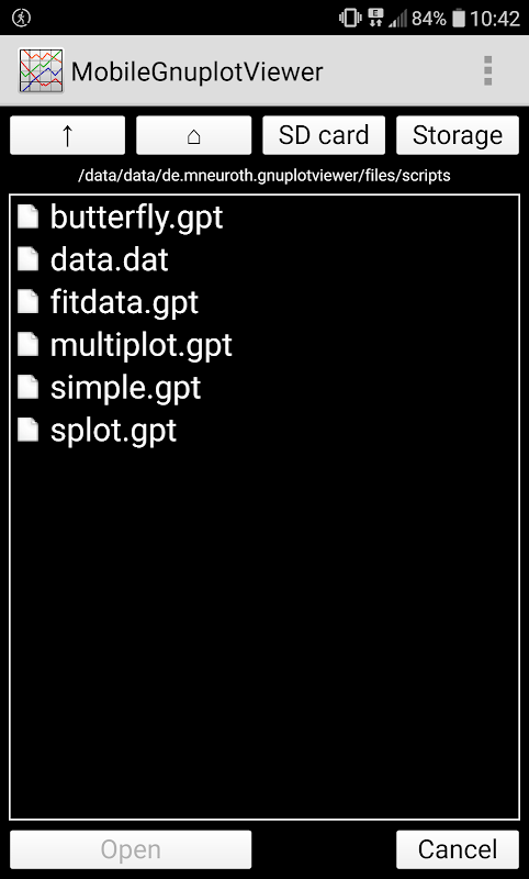 این برنامه منسوخ شده است ، لطفاً اکنون از برنامه جانشین Mobile Gnuplot Viewer (جدید) استفاده کنید ، که برای دستگاه های لمسی مانند تلفن های همراه و رایانه های لوحی بهینه شده است. به https://play.google.com/store/apps/details؟id=de.mneuroth.gnuplotviewerquick مراجعه کنید: