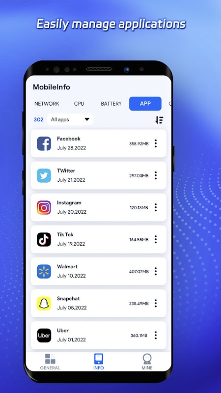 MobileInfo به شما امکان می دهد تلفن خود را به راحتی مدیریت کنید.