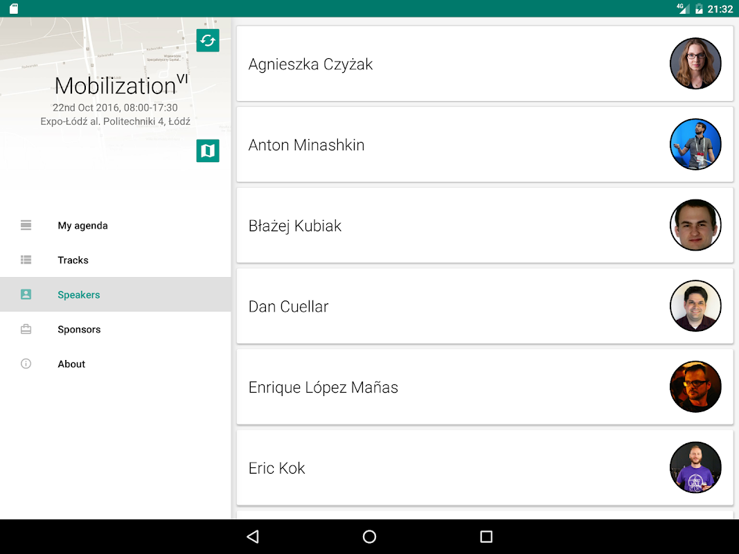 Source code: https://github.com/lecho/conference-app