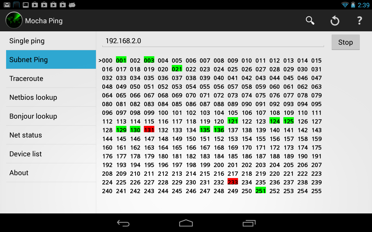 Network Ping یک ابزار تست نرم افزاری برای حفظ و رفع اشکال مشکلات شبکه در یک شبکه محلی (LAN) است. یک نمای آسان برای یک زیرشبکه کامل در یک صفحه نمایش دریافت کنید. به اسکرین شات هایی که وضعیت دستگاه های 192.168.2.0 - 192.168.2.255 را نشان می دهد نگاه کنید. سبز و دستگاه در حال کار است و قرمز است، دستگاه دیگر روی شبکه LAN نیست.