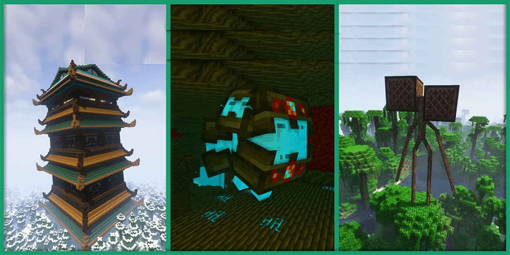More Simple Structures Addon تعداد زیادی ساختار جدید به صورت طبیعی به بازی اضافه می کند. این سازه ها از بوته های کوچک تا اهرام جنگلی بزرگ را شامل می شود