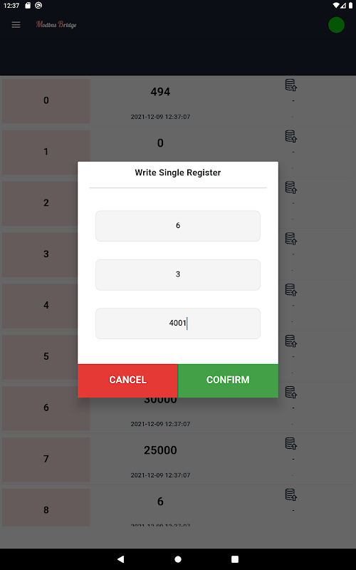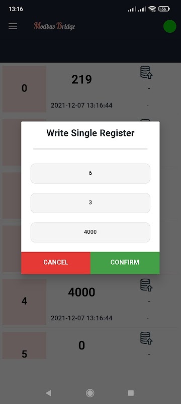 Modbus Bridge is an application for test and simulate the Modbus protocol for Modbus slave devices on android devices. This application supports both TCP/IP and Serial Port (via FTDI) connection.