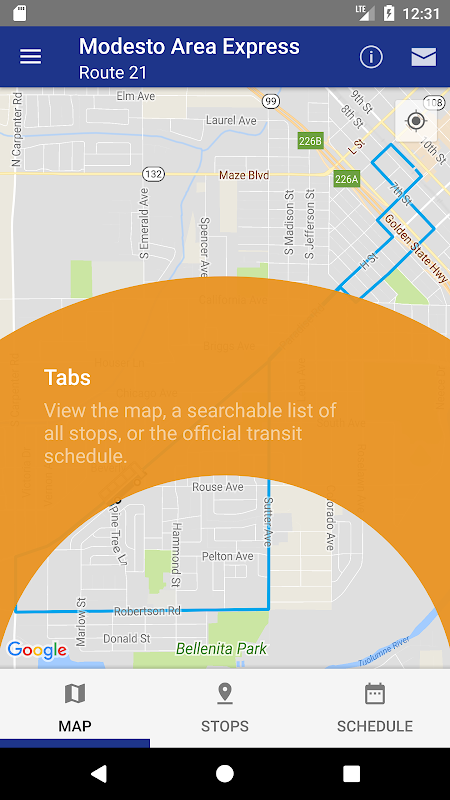 اطلاعات حمل و نقل در زمان واقعی برای مودستو منطقه اکسپرس