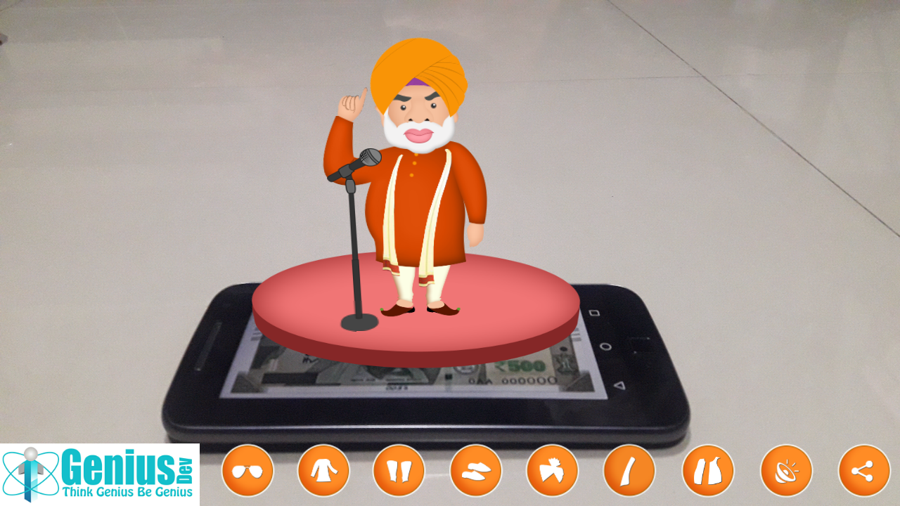 You can scan new ₹ 2000 or ₹ 500 RS note and you will see Modi ji Cartoon with Various Options Just one tap to set Specs,Turban,Shoes,Trouser,Pyjamas,Mic.